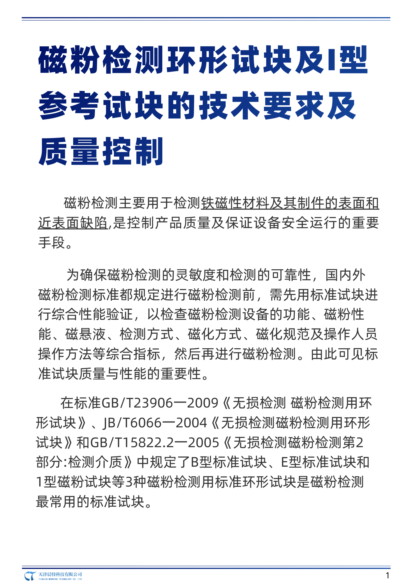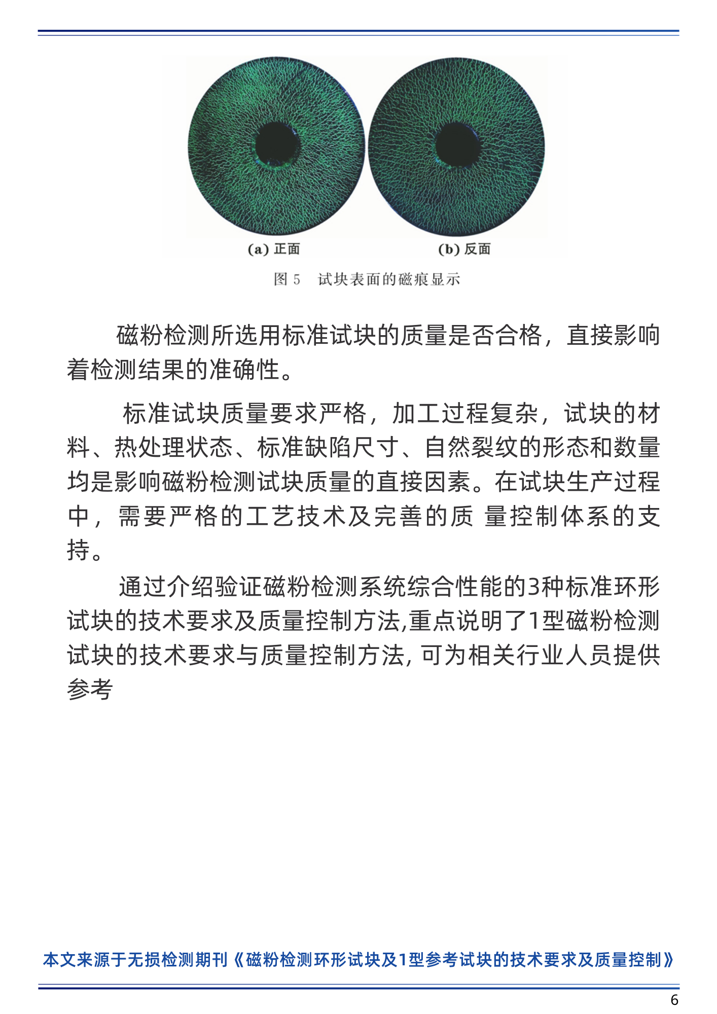 磁粉检测环形试块及I型参考试块的技术要求及质量控制